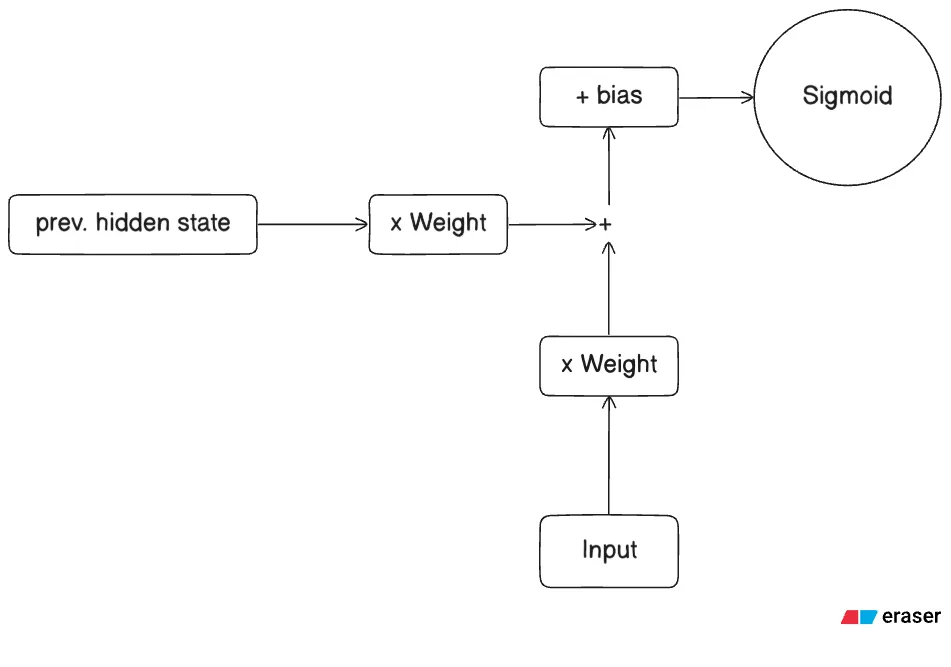 Note: We assume this to be the first LSTM cell, and hence there is no contribution from the previous cell. This will be clearer once you understand all the gates in a LSTM network.